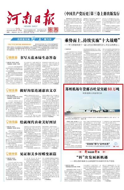 本報(bào)訊(記者 郭北晨)12月22日上午,中原龍浩航空B747全貨機(jī)從印度金奈飛抵鄭州。隨著飛機(jī)平穩(wěn)降落,鄭州機(jī)場今年貨郵吞吐量已突破80萬噸,創(chuàng)下通航以來年貨郵吞吐量歷史新高,鄭州國際航空貨運(yùn)樞紐建設(shè)邁上新臺階。
