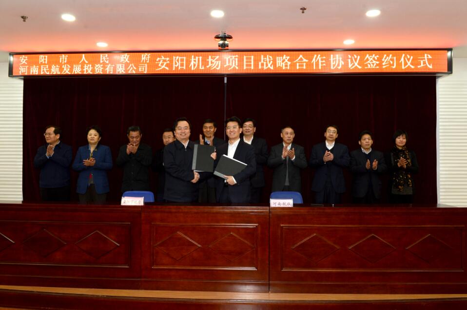 12月29日,河南航投與安陽市政府在安陽簽署《戰(zhàn)略合作協(xié)議》,在新年前就安陽豫東北機(jī)場的開工奠基舉行簡短而隆重的儀式。