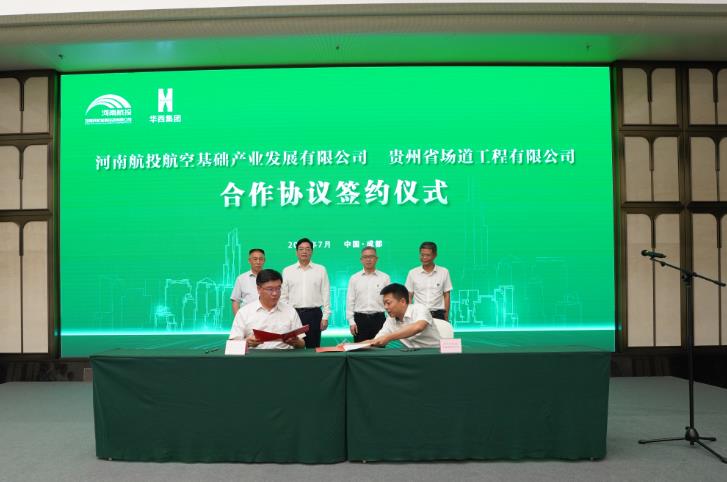 7月16日,河南民航發(fā)展投資有限公司(簡(jiǎn)稱河南航投)與四川華西集團(tuán)有限公司(簡(jiǎn)稱四川華西)在成都舉行了簡(jiǎn)短而熱烈的簽約儀式,兩家跨省國(guó)企約定,在民航產(chǎn)業(yè)展開(kāi)全面合作。河南航投黨委書(shū)記、董事長(zhǎng)張明超,黨委副書(shū)記、總經(jīng)理、副董事長(zhǎng)劉建葆,四川華西黨委書(shū)記、董事長(zhǎng)楊斌,黨委副書(shū)記、總經(jīng)理、副董事長(zhǎng)馬林出席。張明超、楊斌分別致辭,劉建葆、馬林代表雙方簽訂《戰(zhàn)略合作協(xié)議》,河南航投基礎(chǔ)產(chǎn)業(yè)公司董事長(zhǎng)趙楠和貴州場(chǎng)道公司執(zhí)行董事劉國(guó)呈代表子公司簽訂《合資合作協(xié)議》。