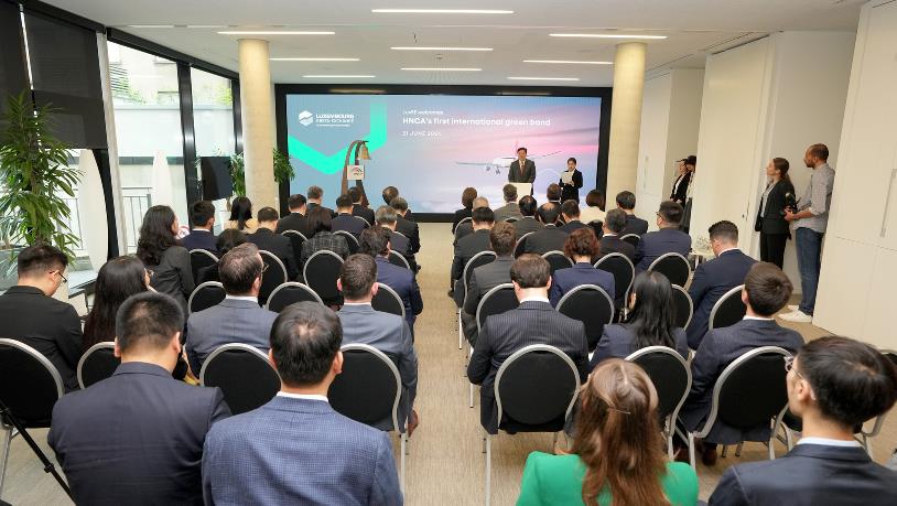當(dāng)?shù)貢r間6月21日上午,中豫航空集團(tuán)以河南航投為主體發(fā)行的3年期人民幣境外債券上市儀式在盧森堡證券交易所舉行。這是中國企業(yè)在歐洲發(fā)行的首支支持可持續(xù)航空燃料(SAF)的綠色債券,也是河南企業(yè)發(fā)行的首支離岸人民幣綠色債券,鄭盧“空中絲路”資金融通實現(xiàn)新突破。