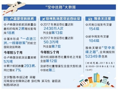 2017年6月14日,國家主席習近平在會見盧森堡首相貝泰爾時,明確提出要深化雙方在“一帶一路”建設框架內(nèi)金融、產(chǎn)能等合作,中方支持建設鄭州—盧森堡“空中絲綢之路”。