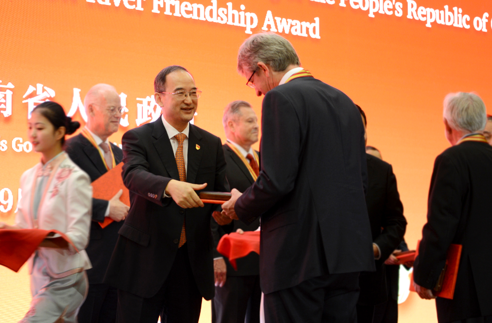 省委、省人大、省政府、省政協(xié)有關(guān)部門負(fù)責(zé)同志,華僑華人、港澳臺同胞代表等參加招待會。據(jù)悉,“黃河友誼獎”是省政府為表彰對河南經(jīng)濟(jì)發(fā)展和社會進(jìn)步作出突出貢獻(xiàn)的國際友人、外籍專家、海外華人華僑和港澳知名人士而設(shè)立的最高榮譽(yù)獎。自2000年起,省政府已先后為109人頒發(fā)了此獎。