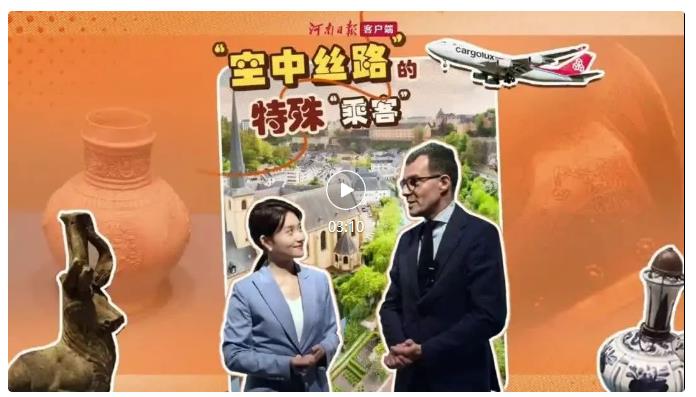 從2013年至今,鄭盧“空中絲路”的建設(shè)在兩國元首的關(guān)注下取得豐碩成果。從兩家企業(yè)的投資合作,發(fā)展到中盧之間的商貿(mào)往來、綠色能源、客運旅游、人文交流等各方面。2018年,河南航投與河南省文物局簽署合作意向書,根據(jù)約定,河南航投將提供航空運輸便利,共同促進河南文物的對外開放和交流、促進兩地民心相通,由鄭盧“空中絲路”保障了河南文物從鄭州抵達盧森堡。當年11月在盧森堡開展時,米歇爾·波費爾主持了開幕式,河南航投與盧森堡貨航負責人一同出席,豫盧雙方在現(xiàn)場達成深化文化交流的意愿。